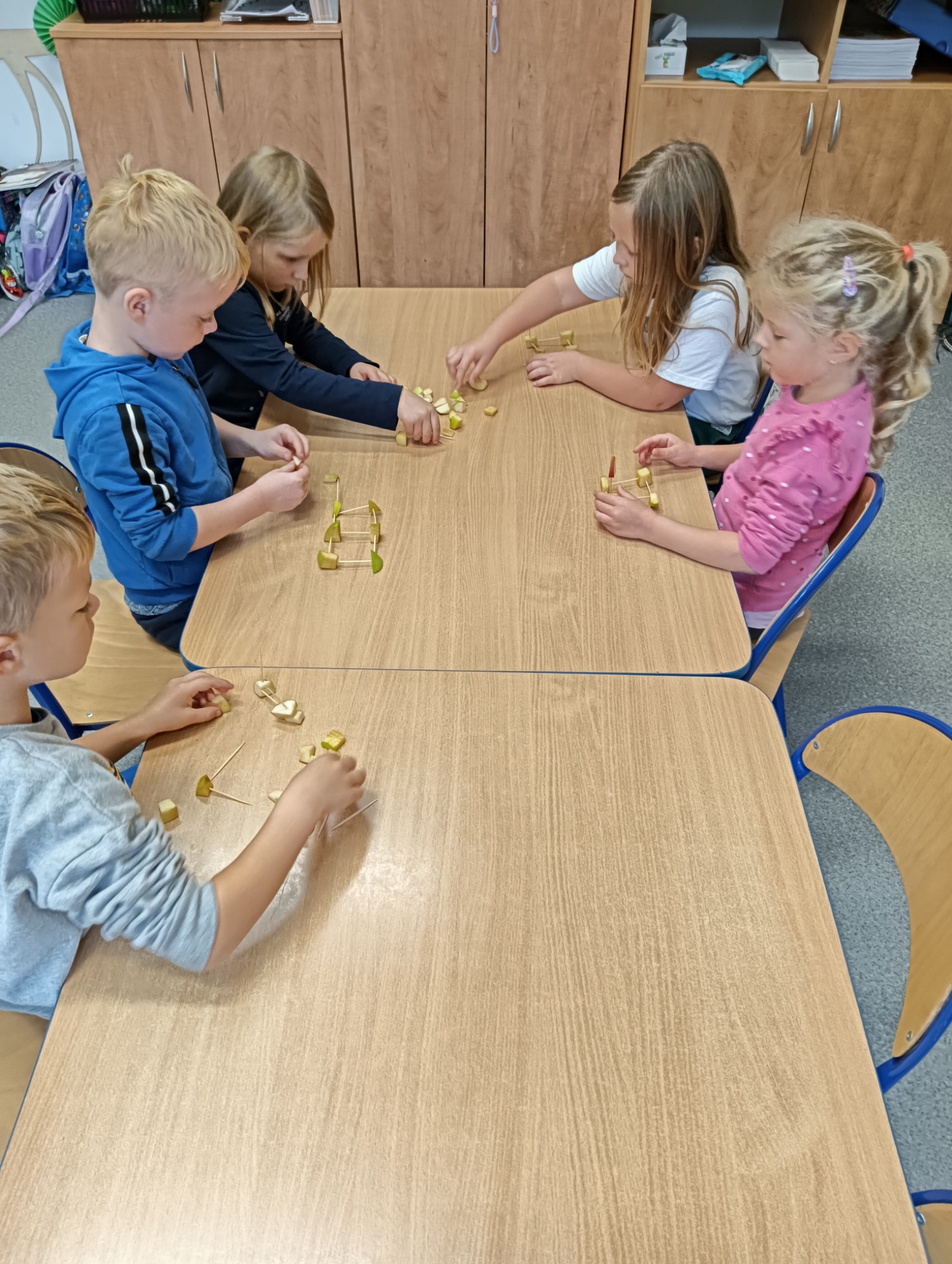 Tego dnia dzieci degustowały także jesienne owoce. Maluchy przygotowały z nich sałatkę owocową, a starszaki wykorzystały jabłka w zajęciach STEAM.