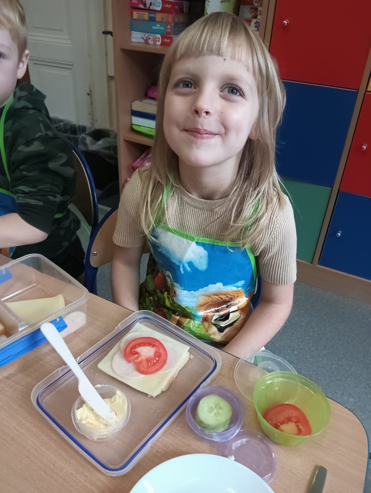 Do zerówki przybył p. Ian King, kucharz mówiący po angielsku. Pod jego nadzorem dzieci samodzielnie przygotowały swoje ulunione kanapki. Przy tej okazji dzieci poznały nazwy artykułów spożywczych w języku angielskim. Gotowe kanapki zostały opieczone przez kucharza. Chrupiące tosty, ciągnący się ser i smaczne warzywa sprawiły, że to śniadanie było naprawdę wyjątkowe.