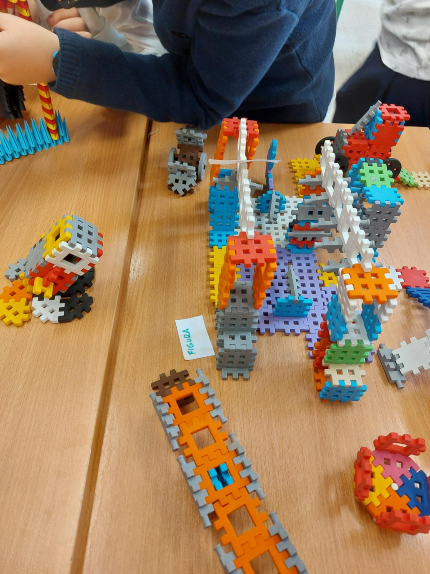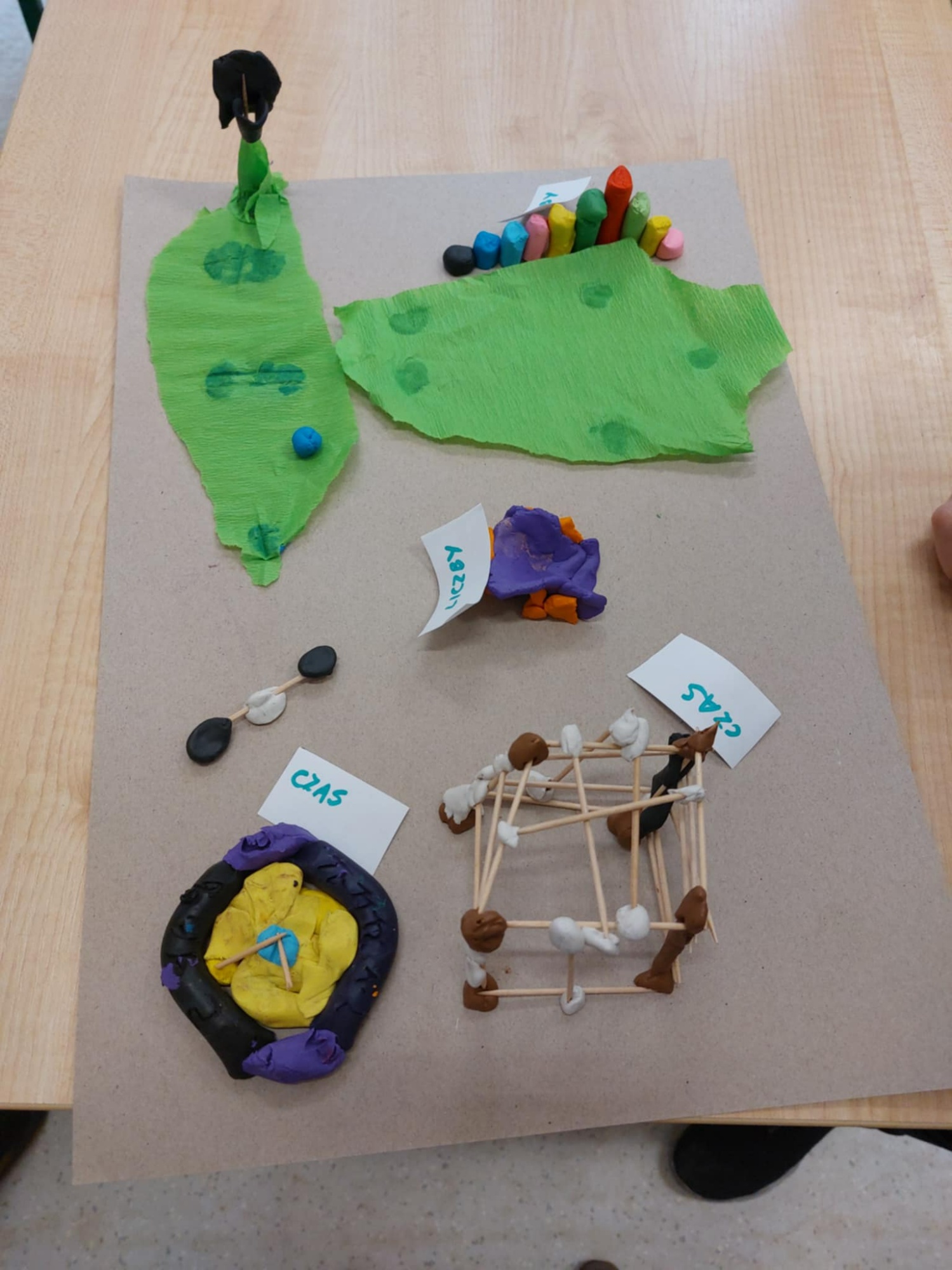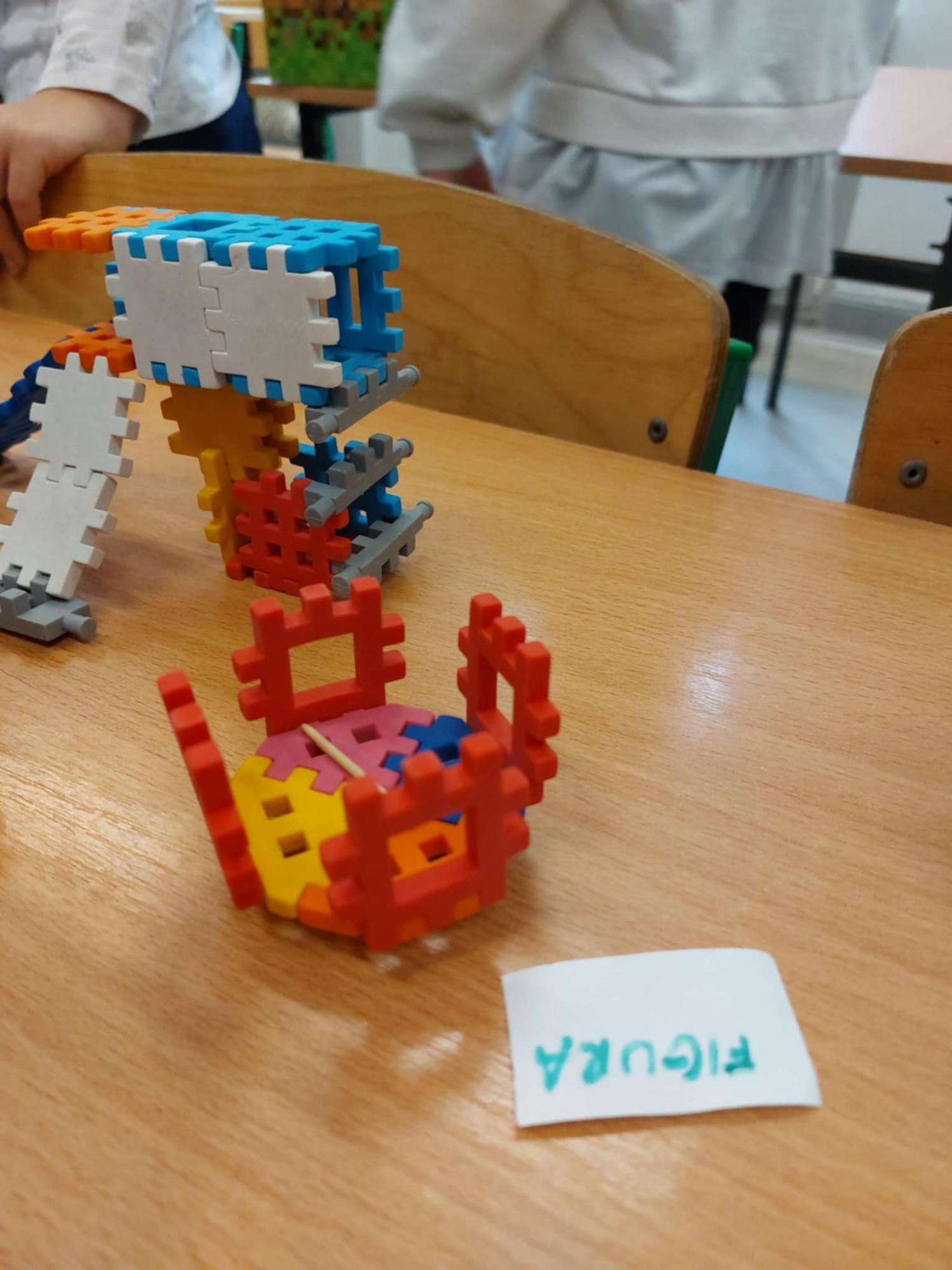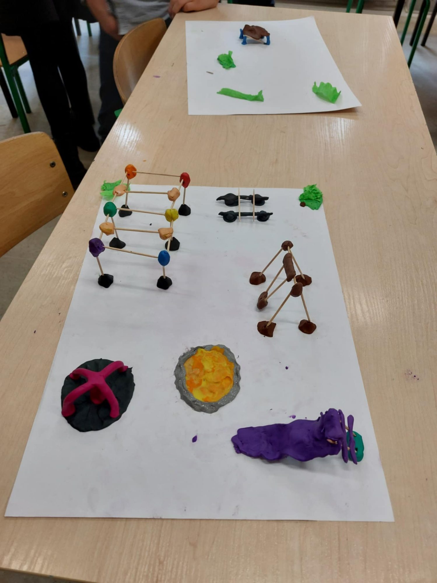 W tym module uczniowie klasy 3 mieli za zadanie poszukać figur i brył geometrycznych na urządzeniach na placu zabaw. Następnie wykonywali makiety z dostępnych materiałów oraz podpisywali je nazwa matematycznymi: linia, bryła, czas, figura